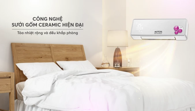 Máy sưởi điều hòa Mutosi MCH-2000E là dòng máy sưởi gốm Ceramic hiện đại được sử dụng phổ biến tại các gia đình, văn phòng có diện tích từ 8 – 12m2.